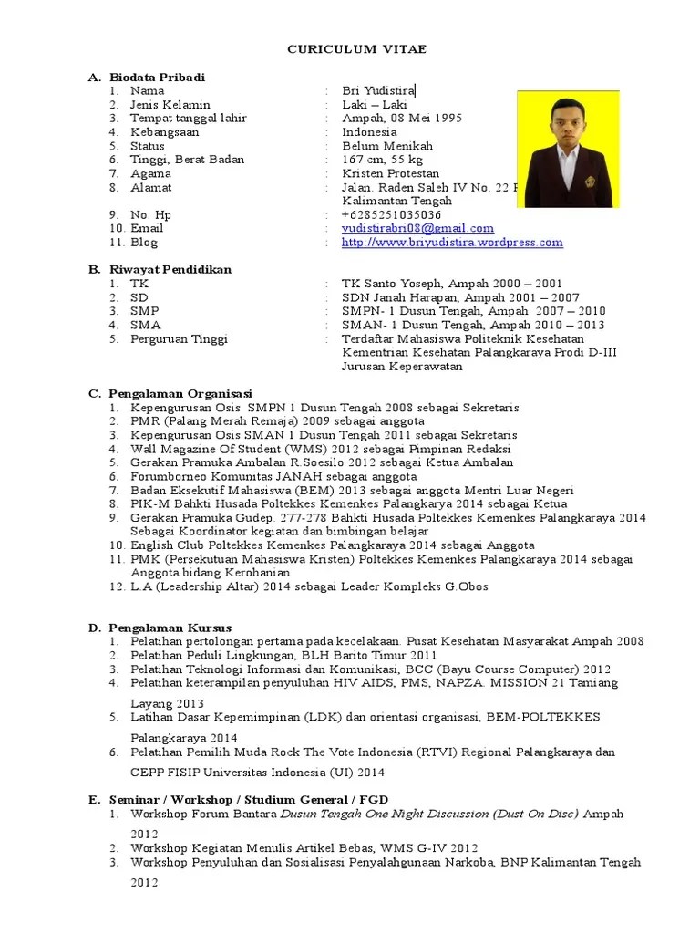 Contoh cv lamaran kerja berikut dapat membantu mu untuk membuat curriculum vitae menarik.